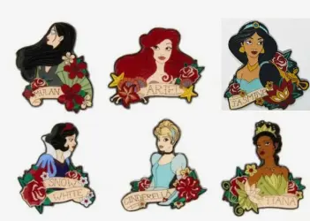 Princess Tattoo Complete 6-Pin Set is an Open Edition pin from the Hot Topic - Princess Tattoo Blind Box Disney pin series. It was originally released on , 2023 and was available from Loungefly .