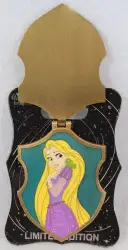 Rapunzel is a Limited Edition (LE) 250 pin from the Hinged Princess Crest pin series. It was originally released on , 2017 and was available from Walt Disney Imagineering .