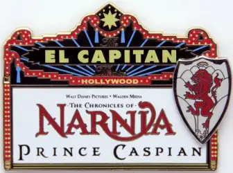 The Chronicles of Narnia: Prince Caspian is a Limited Edition (LE) 300 pin from the El Capitan Marquee Series pin series. It was originally released on , 2008 and was available from Disney Studio Store Hollywood / Soda Fountain .