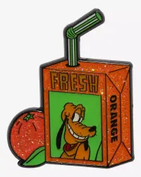 Pluto Orange Juice is an Open Edition pin from the Hot Topic - Mickey & Friends Juice Box Mystery Collection Disney pin series. It was originally released on , 2026 and was available from an Officially Licensed Disney trading pin vendor (see description for more information).