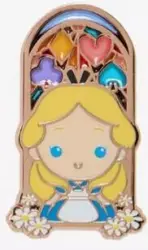 Alice is an Open Edition pin from the Hot Topic- Alice in Wonderland Stain Glass Window Blind Box Disney pin series. It was originally released on , 2026 and was available from an Officially Licensed Disney trading pin vendor (see description for more information).