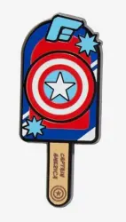 Captain America is an Open Edition pin from the Marvel Popsicle Characters Blind Box Disney pin series. It was originally released on , 2026 and was available from an Officially Licensed Disney trading pin vendor (see description for more information).