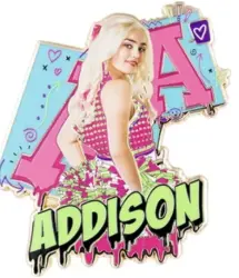 Addison is a Limited Edition (LE) 300 pin from the PALM Zombies Mystery Disney pin series. It was originally released on , 2026 and was available from an Officially Licensed Disney trading pin vendor (see description for more information).