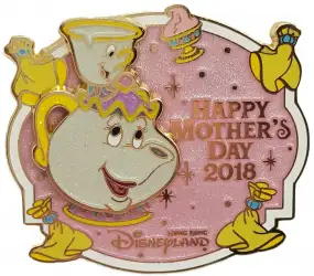 2018 - Mrs. Potts and Chip is a Limited Edition (LE) 500 pin from the Mother's Day pin series. It was originally released on , 2018 and was available from Hong Kong Disneyland .