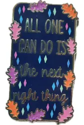 The Next Right Thing is a Limited Release pin from the Fantasy Pin Series: Maple and Magic Co - Disney Quotes pin series. It is an Unlicensed (Fantasy) pin, so therefore it is not allowed to be traded in the Disney Parks.