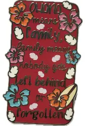 Ohana is a Limited Release pin from the Fantasy Pin Series: Maple and Magic Co - Disney Quotes pin series. It is an Unlicensed (Fantasy) pin, so therefore it is not allowed to be traded in the Disney Parks.