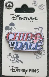 Chip ‘n’ Dale is an Open Edition pin from the Vintage Character Name Series Disney pin series. It was originally released on , 2026 and was available from Disneyland Resort Paris .