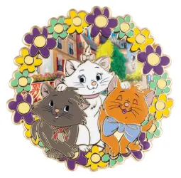 Marie, Toulouse and Berlioz is an Open Edition pin from the Pink a la Mode (PALM) - Disney Classics Once Upon a Royal Realm Mystery Jumbo Disney pin series. It was originally released on , 2026 and was available from an Officially Licensed Disney trading pin vendor (see description for more information).