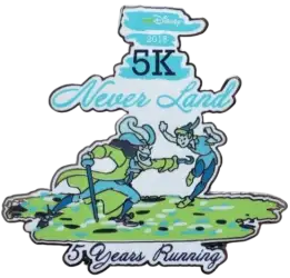 Never Land (Hook and Peter Pan) is a Limited Release pin from the runDisney: Tinker Bell Half-Marathon Weekend pin series. It was originally released on , 2016 and was available from Disneyland Resort .