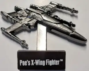 Poe's X-Wing Fighter is a Limited Edition (LE) 6000 pin from the Star Wars Vehicles pin series. It was originally released on , 2018 and was available from Multiple Sources (WDW, DLR, etc.).