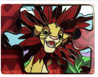 Young Simba With Leaf Mane - Chaser is a Limited Edition (LE) 600 pin from the Character Connection Mystery Collection - The Lion King Puzzle pin series. It was originally released on , 2014 and was available from Multiple Sources (WDW, DLR, etc.).