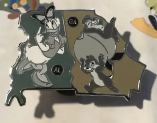 Alabama and Georgia CHASER is a Limited Edition (LE) 200 pin from the The American Adventure Map Puzzle Mystery Collection pin series. It was originally released on , 2018 and was available from Multiple Sources (WDW, DLR, etc.).