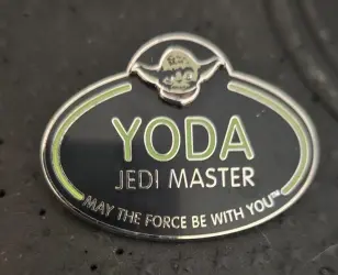 Jedi Master Cast Name Tag is a Limited Edition (LE) 1500 pin from the Yoda pin series. It was originally released on , 2013 and was available from Multiple Sources (WDW, DLR, etc.).