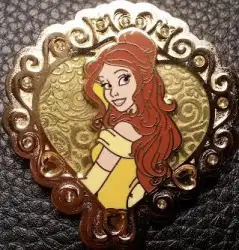 Belle is an Open Edition pin from the Princess in Gold Jeweled Frame pin series. It was originally released on , 2013 and was available from Hong Kong Disneyland .