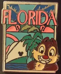 Florida is a Limited Release pin from the 2008 Hidden Mickey - Chip & Dale Postcards pin series. It was originally released on , 2008 and was available from Disneyland Resort .