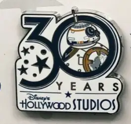 Character Logos Pin Set - BB-8 ONLY is a Limited Release pin in the Character Logos Pin Set - Full Set 6-pin set from the Disney's Hollywood Studios 30th Anniversary pin series. It was originally released in May, 2019 and was available from Walt Disney World .