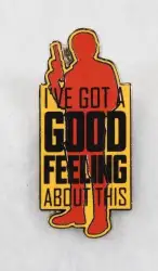 Han Solo Silhouette is an Open Edition pin in the Solo: A Star Wars Story Pin Trading Flair Set (4 pins) 4-pin set from the SOLO: A Star Wars Story pin series. It was originally released in May, 2018 and was available from Multiple Sources (WDW, DLR, etc.).