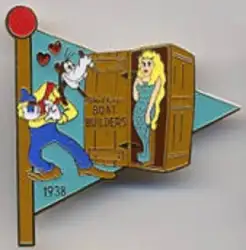 Boat Builders 1938 is a Limited Edition (LE) 2900 pin from the Marimo Craft (マリモクラフト) - History of Art Series pin series. It was originally released on , 2002 and was available from an Officially Licensed Disney trading pin vendor (see description for more information).