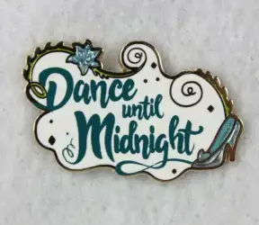 Dance until Midnight - Cinderella is an Open Edition pin in the Princess Quotes (4 pin set) 4-pin set from the Disney Parks - Princess Quotes pin series. It was originally released on , 2018 and was available from Multiple Sources (WDW, DLR, etc.).