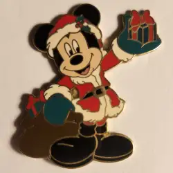 Santa Mickey with Present is an Open Edition pin from the Christmas 2005 pin series. It was originally released in November, 2005 and was available from Multiple Sources (WDW, DLR, etc.).
