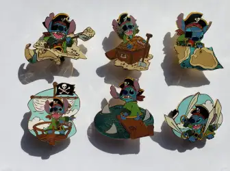 Stitch Pirate Adventure (6 Pin Set) is a Limited Edition (LE) 100 pin from the Stitch Pirate Adventure (6 Pin Set) pin series. It was originally released on , 2006 and was available from Disney Auctions .