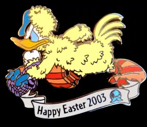 Danonald in yellow Easter chick costume. is a Limited Edition (LE) 1500 pin from the Easter Parade of Pins pin series. It was originally released on , 2003 and was available from Walt Disney World .