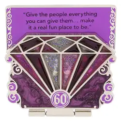 Walt Disney - Anniversary - Purple - Quote is a Limited Edition (LE) 3000 pin from the Disneyland 60th Celebration Diamond Countdown pin series. It was originally released on , 2015 and was available from Disneyland Resort .