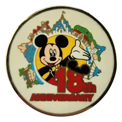 18th Anniversary - Mickey Mouse is an Open Edition pin from the Tokyo Disneyland Anniversaries pin series. It was originally released on , 2001 and was available from Tokyo Disneyland Resort .
