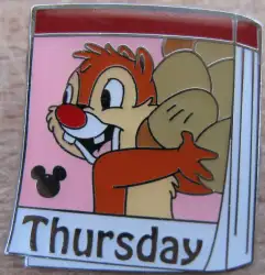 Thursday (Dale) is a Limited Release pin from the Daily Calendar Series pin series. It was originally released on , 2013 and was available from Hong Kong Disneyland .