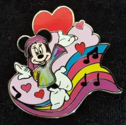 Hippie Minnie on Rainbow is a Limited Release pin from the 1970s Mickey Mouse and Friends Mystery Collection pin series. It was originally released on , 2013 and was available from Walt Disney World .