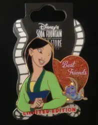 Mulan & Cri-Kee is a Limited Edition (LE) 400 pin from the Best Friends pin series. It was originally released on , 2013 and was available from Disney Studio Store Hollywood / Soda Fountain .