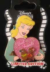 Cinderella, Jaq & Gus is a Limited Edition (LE) 400 pin from the Best Friends pin series. It was originally released on , 2013 and was available from Disney Studio Store Hollywood / Soda Fountain .