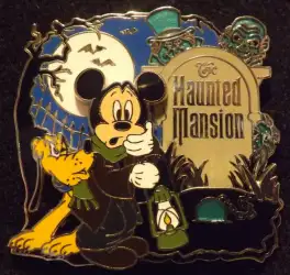 Caretaker Mickey Mouse & Pluto at the Haunted Mansion is an Open Edition pin from the Haunted Mansion pin series. It was originally released on , 2013 and was available from Walt Disney World .
