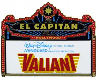 Valiant is a Limited Edition (LE) 300 pin from the El Capitan Marquee Series pin series. It was originally released on , 2005 and was available from Disney Studio Store Hollywood / Soda Fountain .