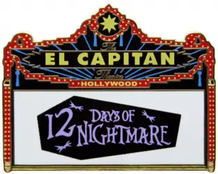 The Nightmare Before Christmas #1 (12 Days of Nightmare) is a Limited Edition (LE) 300 pin from the El Capitan Marquee Series pin series. It was originally released on , 2005 and was available from Disney Studio Store Hollywood / Soda Fountain .