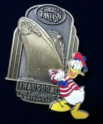 Donald Duck is a Limited Edition (LE) 500 pin from the Disney Fantasy Inaugural Sailings Boxed Pin Set pin series. It was originally released on , 2012 and was available from Disney Cruise Line .