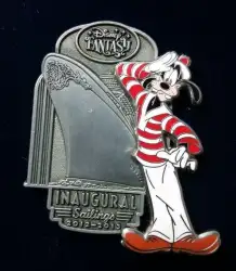 Goofy is a Limited Edition (LE) 500 pin from the Disney Fantasy Inaugural Sailings Boxed Pin Set pin series. It was originally released on , 2012 and was available from Disney Cruise Line .