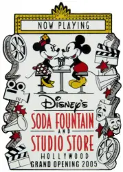 Soda Fountain and Studio Store Grand Opening is a Limited Edition (LE) 2005 pin from the Soda Fountain & Studio Store Hollywood Grand Opening pin series. It was originally released on , 2005 and was available from Disney Studio Store Hollywood / Soda Fountain .