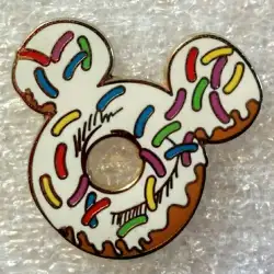 Mickey Mouse ear donut is an Open Edition pin from the Mickey Donut and Tea pin series. It was originally released on , 2011 and was available from Multiple Sources (WDW, DLR, etc.).