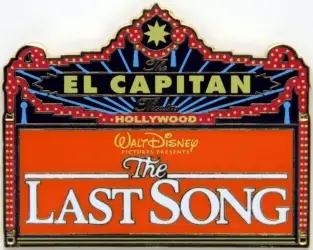 The Last Song is a Limited Edition (LE) 150 pin from the El Capitan Marquee Series pin series. It was originally released on , 2010 and was available from Disney Studio Store Hollywood / Soda Fountain .
