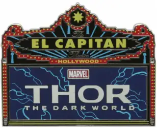Thor: The Dark World is a Limited Edition (LE) 500 pin from the El Capitan Marquee Series pin series. It was originally released on , 2013 and was available from Disney Studio Store Hollywood / Soda Fountain .