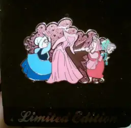 Flora, Fauna and Merryweather is a Limited Edition (LE) 300 pin from the Sleeping Beauty pin series. It was originally released on , 2014 and was available from Disney Store UK .
