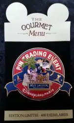 Jumbo Stitch & Angel Blue Lagoon is a Limited Edition (LE) 400 pin from the The Gourmet Menu PTE pin series. It was originally released on , 2011 and was available from Disneyland Resort Paris .