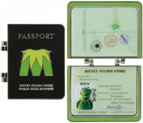 Kermit the Frog is a Limited Edition (LE) 400 pin from the Muppets Passports pin series. It was originally released on , 2014 and was available from Disney Studio Store Hollywood / Soda Fountain .