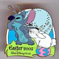 Stitch is a Limited Edition (LE) 1500 pin from the Easter Egg Hunt Collection pin series. It was originally released on , 2005 and was available from Walt Disney World .