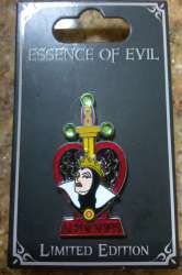 Malicious (Evil Queen) is a Limited Edition (LE) 3000 pin from the Essence of Evil Series pin series. It was originally released on , 2017 and was available from Walt Disney World .