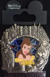 Belle is a Limited Edition (LE) 300 pin from the Stained Glass Princess pin series. It was originally released on , 2015 and was available from Walt Disney Imagineering .
