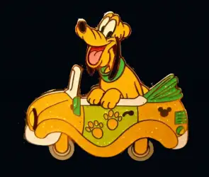 5 Pin Set - Pluto is an Open Edition pin from the Car - Mystery Tin Collection pin series. It was originally released on , 2009 and was available from Hong Kong Disneyland .