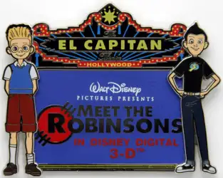 Meet the Robinsons is a Limited Edition (LE) 300 pin from the El Capitan Marquee Series pin series. It was originally released on , 2007 and was available from Disney Studio Store Hollywood / Soda Fountain .