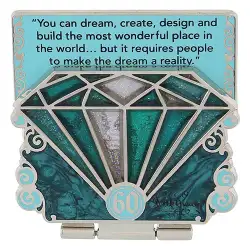 Walt Disney - Anniversary - Aqua - Quote is a Limited Edition (LE) 3000 pin from the Disneyland 60th Celebration Diamond Countdown pin series. It was originally released on , 2015 and was available from Disneyland Resort .